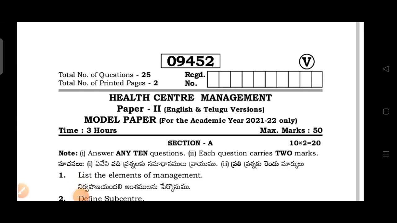 Ts& AP Mphw 2nd yr, paper 3 మోడల్ Question papers in Health center